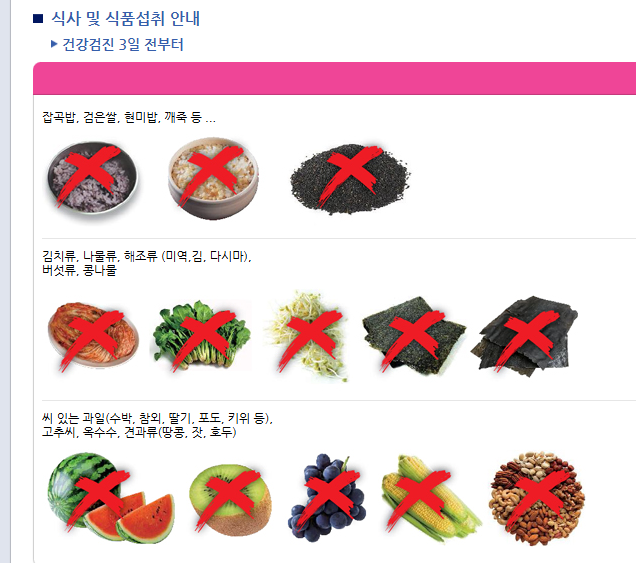 따라서 검사 이틀 전부터는 위 음식들을 피하는 것이 좋습니다.