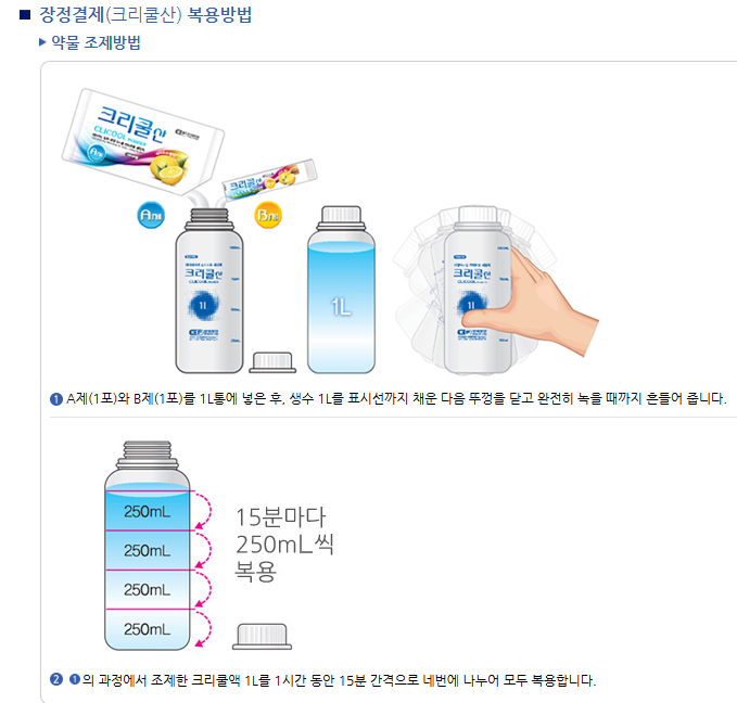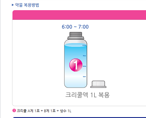 그래서 장을 비우는 대장약을 먹어야 하는데, 이 약은 정해진 시간과 정해진 양을 꼭 지켜서 먹어야 합니다.